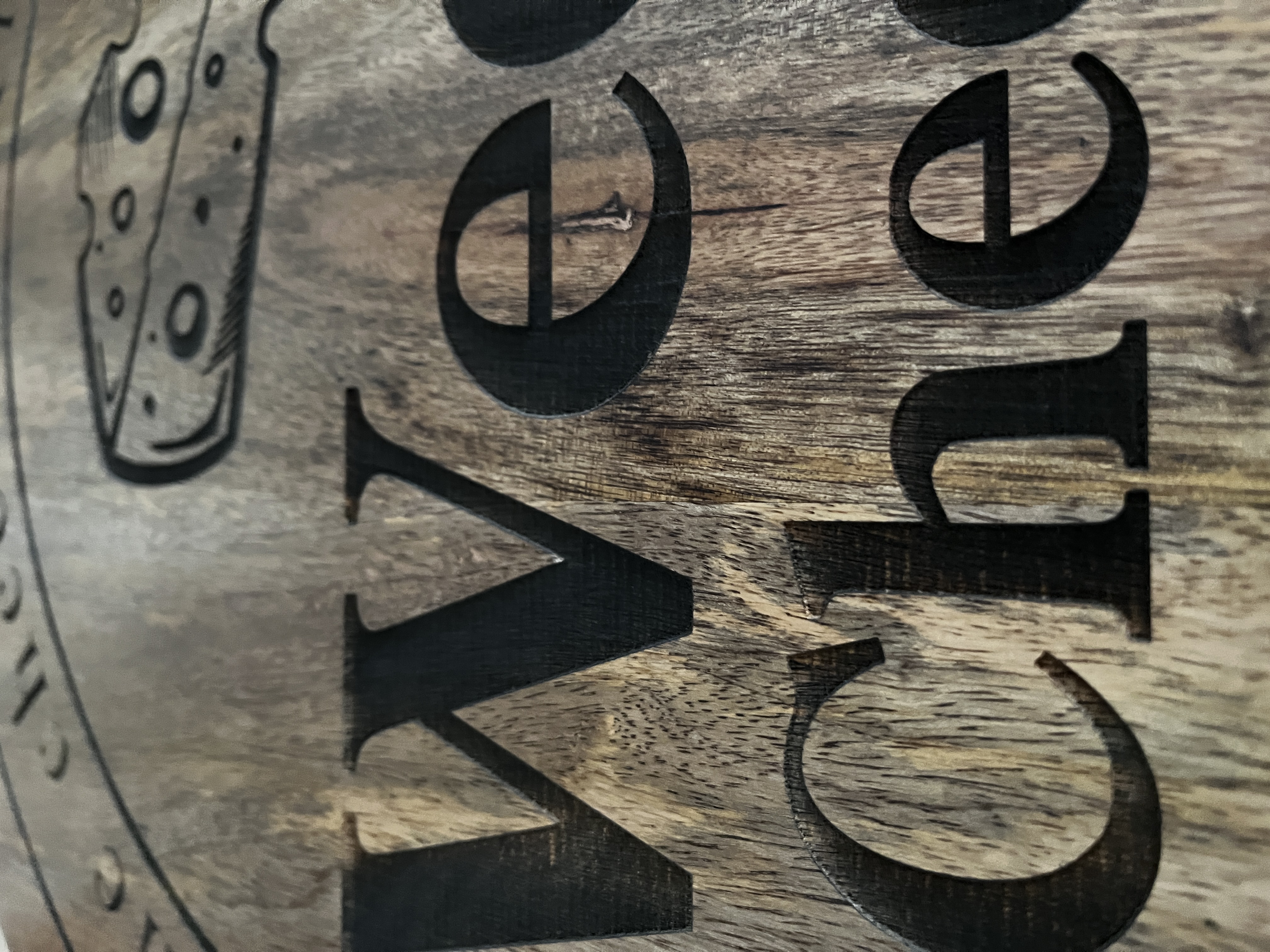 Pieces for our trade show booth, shirts for staff, charcuterie boards. Storefront signage!